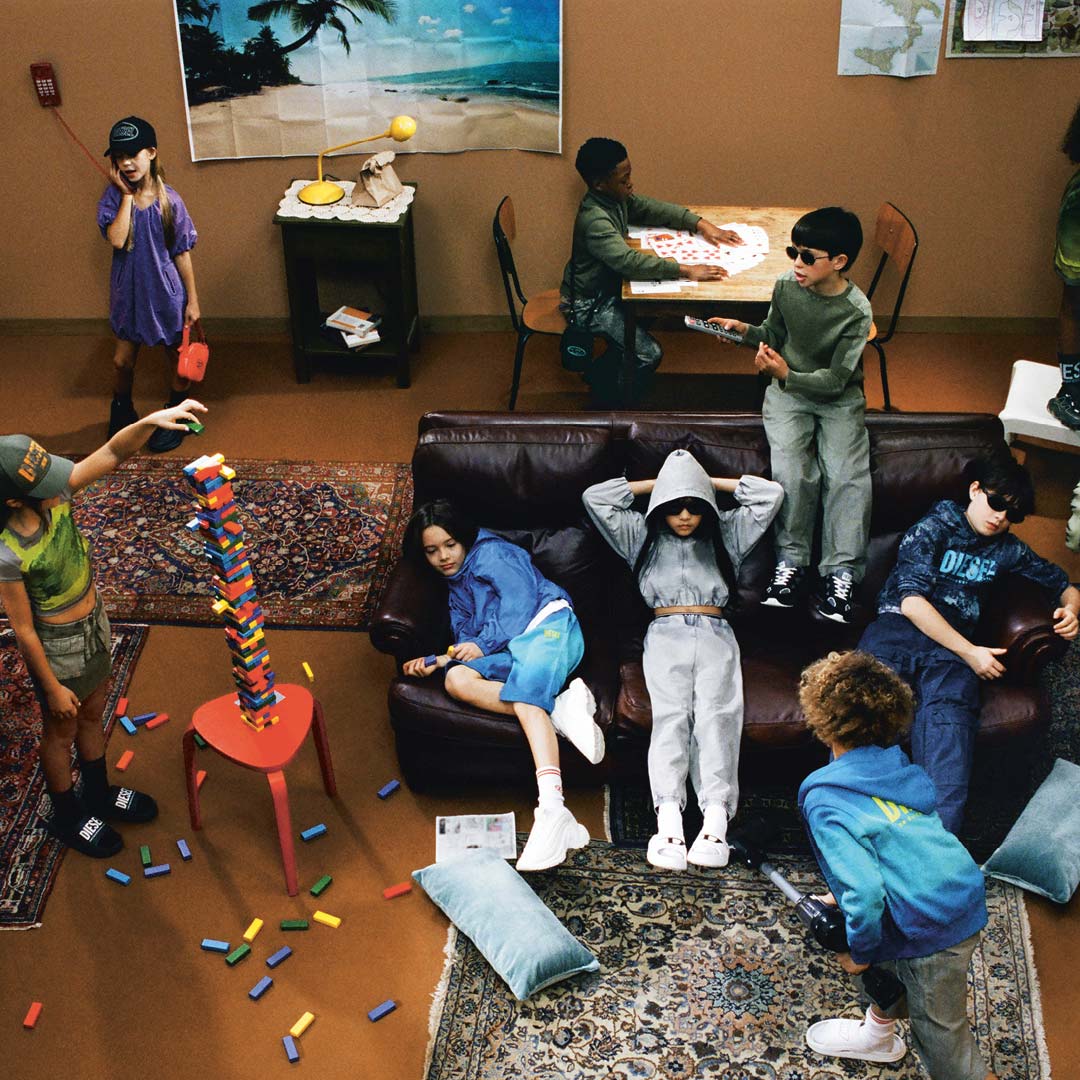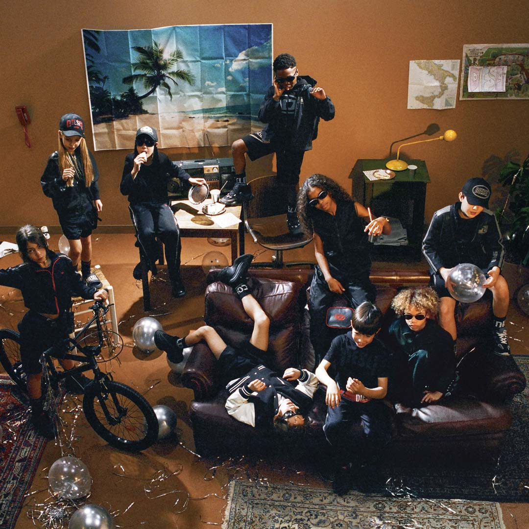 A group of kids wearing SS25 Diesel Collection
